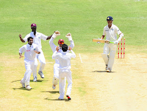 Dravid (R), bowl Devendra Bishoo (2R), caught Darren Sammy (2L) during